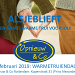 Kringloopwarenhuis Opnieuw & Co in Rotterdam doet graag iets voor de medemens. Tijdens de warmetruiendag zetten wij ons in zodat een ander het ook warm heeft en delen we in samenwerking met Dock op vrijdag 15 februari warme truien uit aan mensen die het nodig hebben en waarvoor het hebben van een warme trui geen vanzelfsprekendheid is.Meedoen aan de warmetruiendag is simpel: zet de verwarming lager, trek een warme trui aan en bespaar energie én verminder de CO2-uitstoot!Maar wat als je in basis geen warme trui hebt, gewoon omdat je … [Lees meer...]