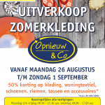 Vanaf maandag 26 augustus tot en met zondag 1 september is de uitverkoop van zomerkleding bij alle vestigingen van Opnieuw & Co. Profiteer van maar liefst 50% korting op heel veel kleding, woontextiel, schoenen, riemen, tassen en accessoires. … [Lees meer...]